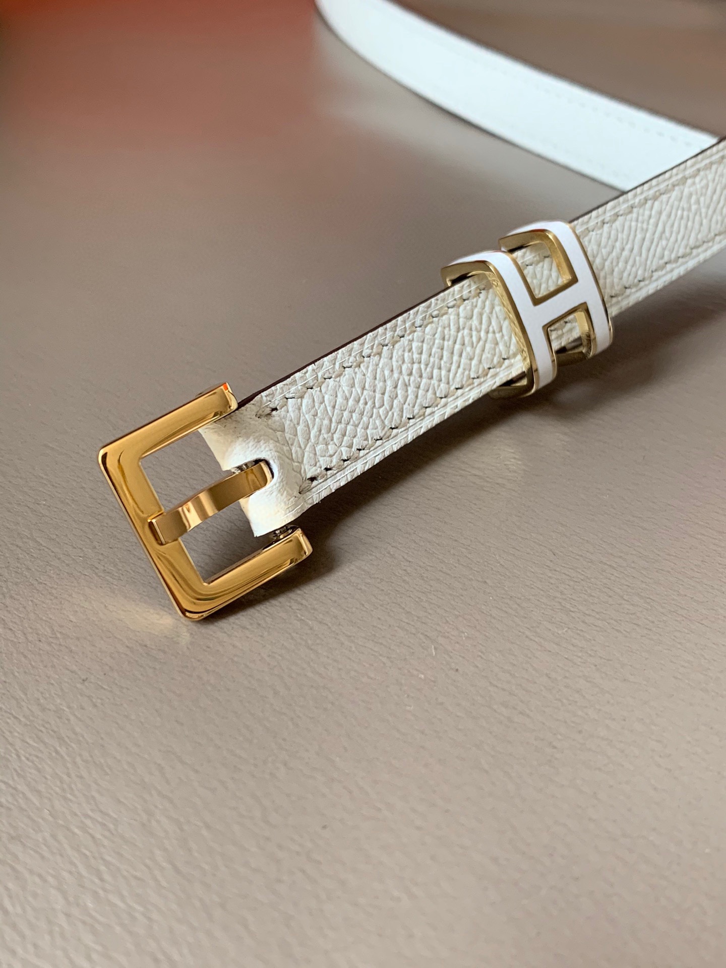 Hermès Female Leather Belt Top Grain Leather White 15mm-s-m