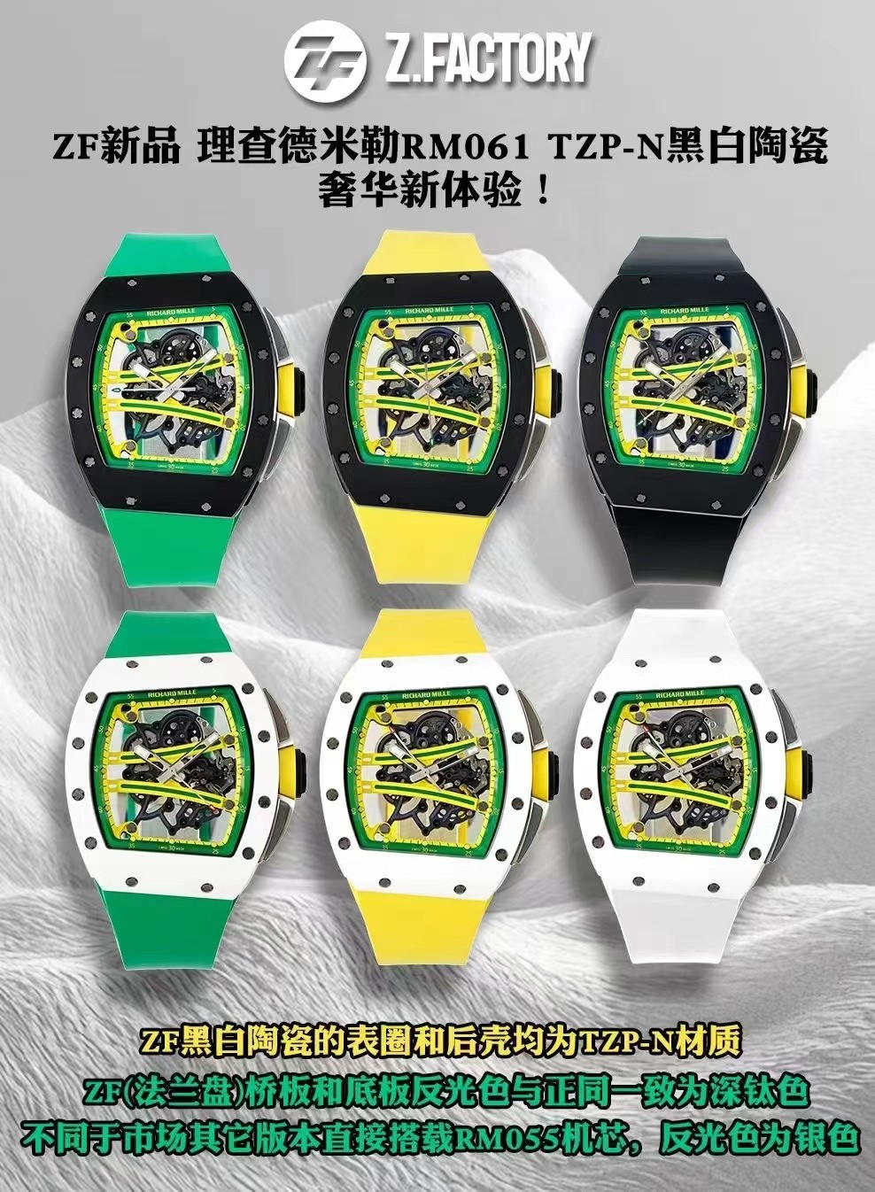 Richard Mille Zf Millerm061 Tzp-n Ceramic Rm061 1 Tzp-n 6g/cm3 .tzp-n 95, 2 Rm055 movement, Rm061 Rmul2 Manual Windingmovement, Rm061