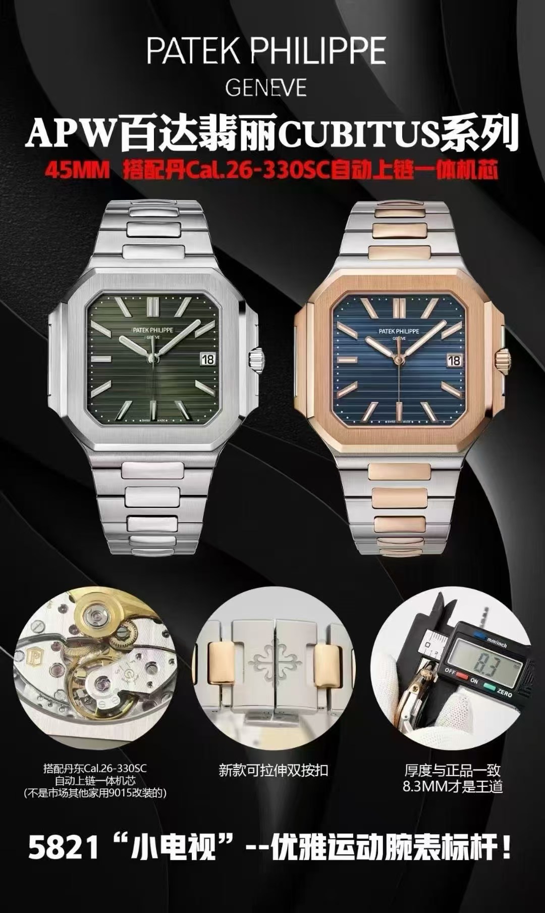 Patek Philippe Apw New Stylepatek Philippe330 movement Cubitus 5821 watch Case .45 mm Dial Hands Cal.26-330scautomatic Winding 9015 38-45 ,waterproof 30 Style Original Strap Stylewatch Clasp