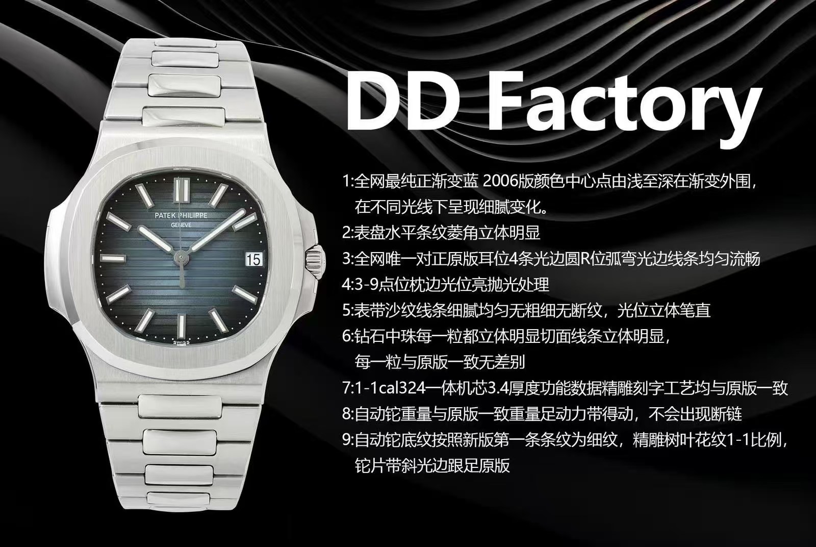 Patek Philippe Ddf 5711, 324 Gram 1- 2006-2018 watch Dial 4 R 3-9 Strap diamond 1-1cal324 Movement3.4thickness 1-1
